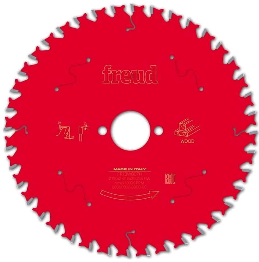 Tarcza przeznaczona do czystego cięcia poprzecznego w drewnie litym i materiałach stolarskich. Model FR13W007H wyposażony jest w 40 zębów o profilu ATB oraz dodatni kąt natarcia +10°, co pozwala uzyskać gładkie i precyzyjne krawędzie przy jednoczesnym lekkim posuwie. Stabilny korpus o grubości 1,6 mm oraz szerokość rzazu 2,4 mm zapewniają dokładność i trwałość podczas długotrwałej pracy.