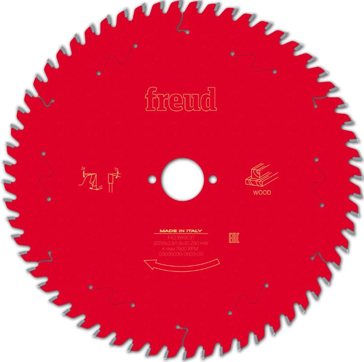 Tarcza przeznaczona do precyzyjnego cięcia poprzecznego w drewnie litym, twardym oraz materiałach stolarskich. Model FR23W003T wyposażony jest w 60 zębów o profilu ATB i dodatni kąt natarcia +10°, co gwarantuje czyste, gładkie i precyzyjne krawędzie. Stabilny korpus o grubości 1,8 mm oraz szerokość rzazu 2,8 mm zapewniają sztywność i cichą pracę w pilarkach stołowych i formatowych 250 mm.