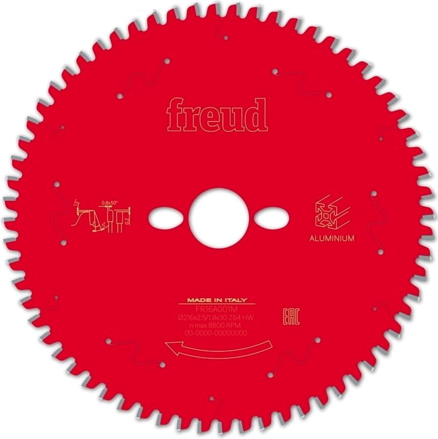Tarcza specjalistyczna przeznaczona do precyzyjnego cięcia aluminium, profili metalowych, PCV i tworzyw sztucznych w ukośnicach i pilarkach kątowych. Model FR16A001M posiada 64 zęby o profilu HLTCG i ujemny kąt natarcia –5°, co zapewnia czyste, kontrolowane cięcie bez zadziorów i odkształceń. Solidny korpus o grubości 1,8 mm oraz rzaz 2,5 mm gwarantują sztywność i stabilność nawet przy długich elementach.