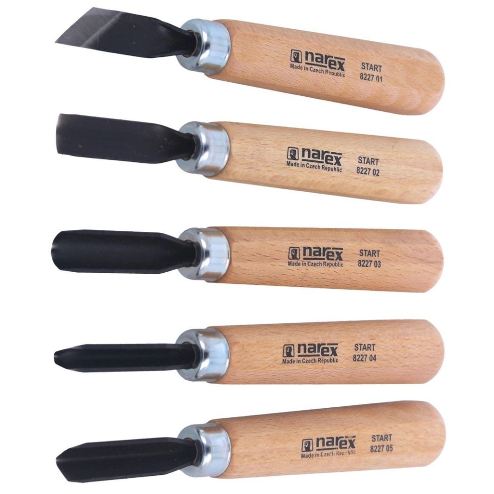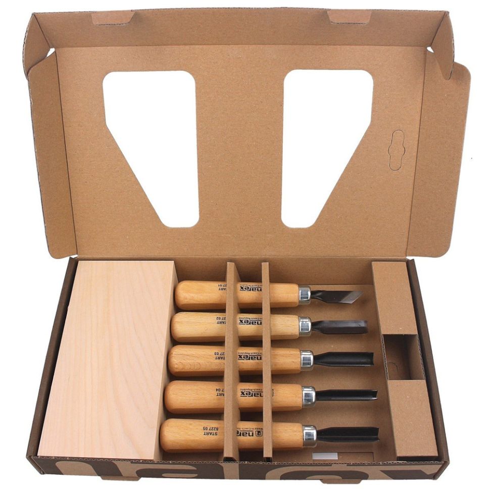Kompletny zestaw narzędzi przygotowany przez czeską markę NAREX z myślą o osobach rozpoczynających rzeźbienie w drewnie.